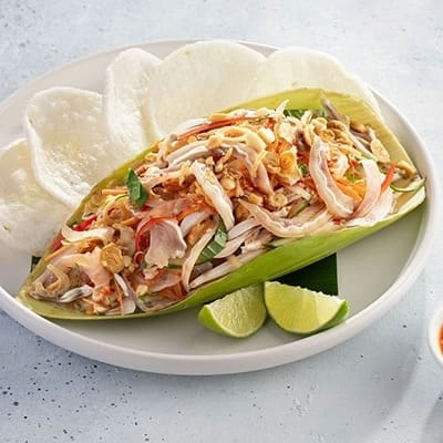 Sử dụng nguyên liệu chuối tây cùng tai heo quen thuộc, các đầu bếp tạo nên sự khác biệt bằng phương pháp luộc hoa chuối để lọc bỏ hết nhựa, tạo cảm giác dễ chịu và an toàn khi ăn. Kết hợp cùng cà rốt, dưa leo, hành tây, củ kiệu, món gỏi chuối tai heo mang màu sắc bắt mắt và những nét chấm phá đặc biệt trong hương vị. Hoàn thiện tất cả là nước mắm chua ngọt dung hòa, tổng thể làm nên món ăn thơm ngon, giàu chất dinh dưỡng và thanh mát ngày hè.