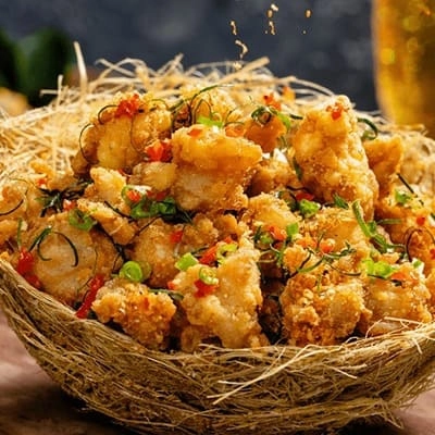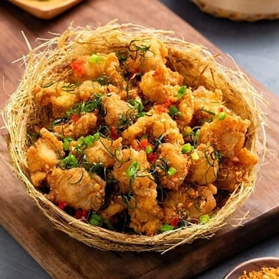 Món sụn gà xóc muối Tây Ninh là một món ăn vặt hoàn hảo với độ giòn từ lớp bột bên ngoài và độ dai dai từ sụn gà bên trong. Các đầu bếp đã sáng tạo khéo léo khi kết hợp muối ớt Tây Ninh và các gia vị hấp dẫn giúp tạo nên một món ăn mới lạ với mùi thơm cùng hương vị đậm đà. Món ăn được gói gọn trong một chiếc tổ chim làm bằng sả chiên, không chỉ đẹp mắt mà thực khách có thể thưởng thức độ giòn thơm, vị vừa ăn.